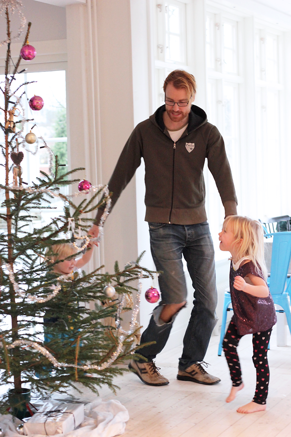 Stora tjejen provar sina julklappsörhängen nöjt, lillkillen den nya "slipsen"och jag funderar på att möblera om och röja